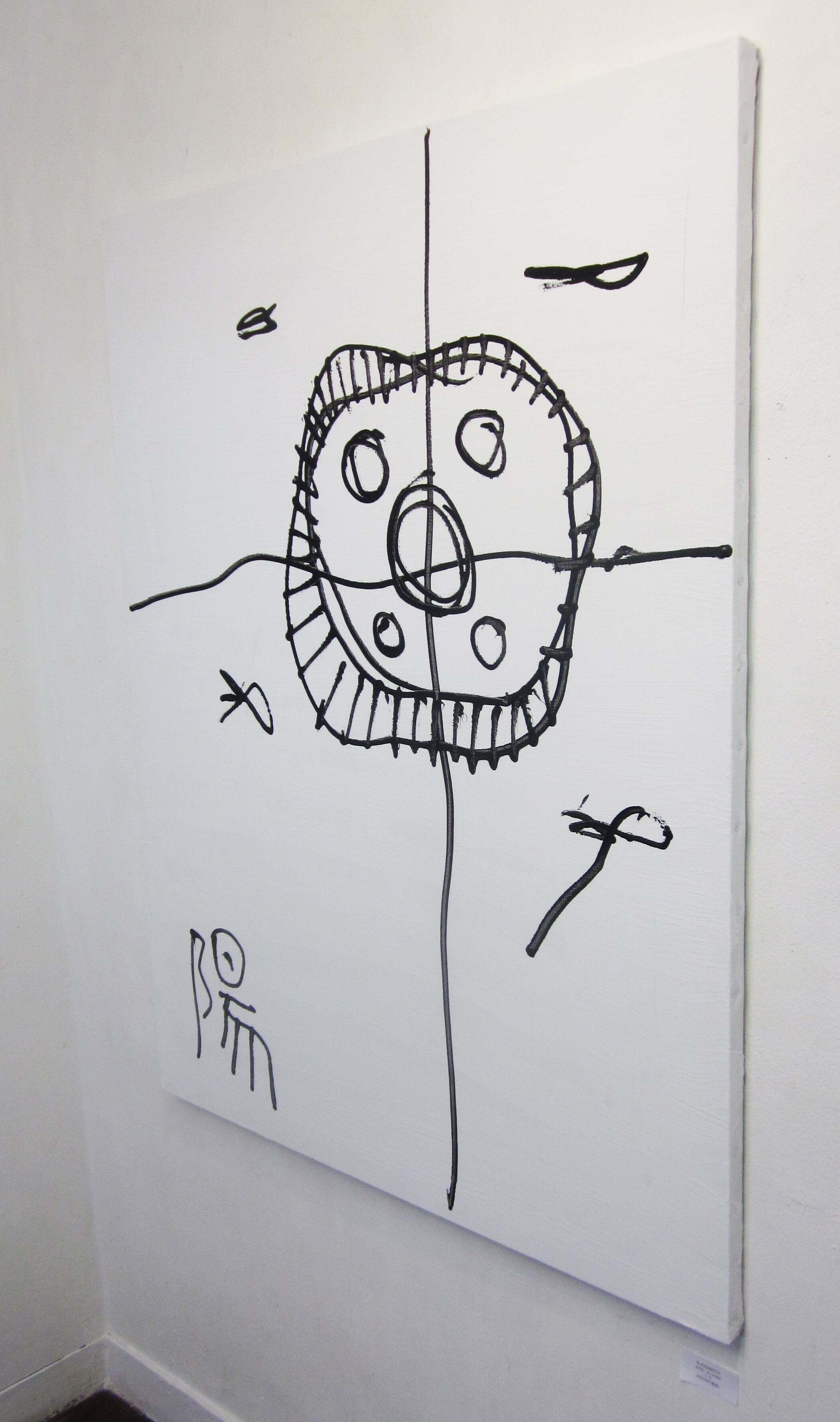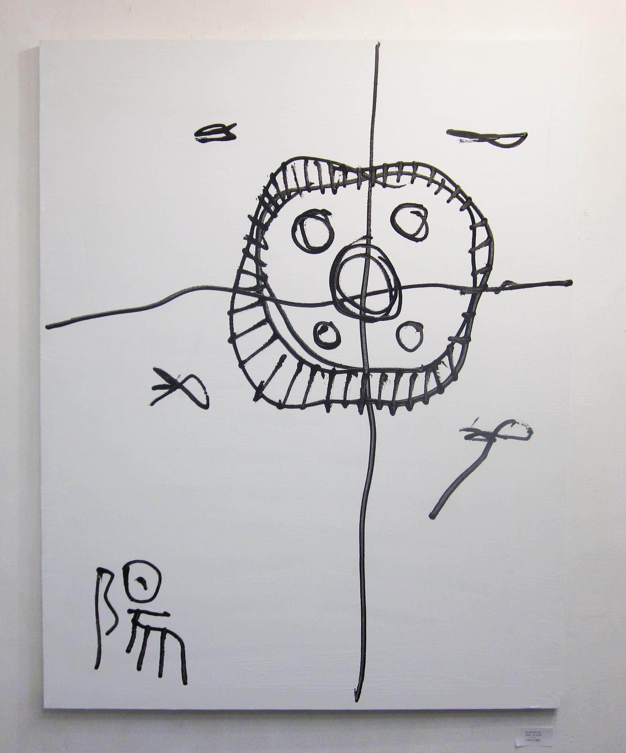 アクリル絵具黒にてドローイングされた作品。