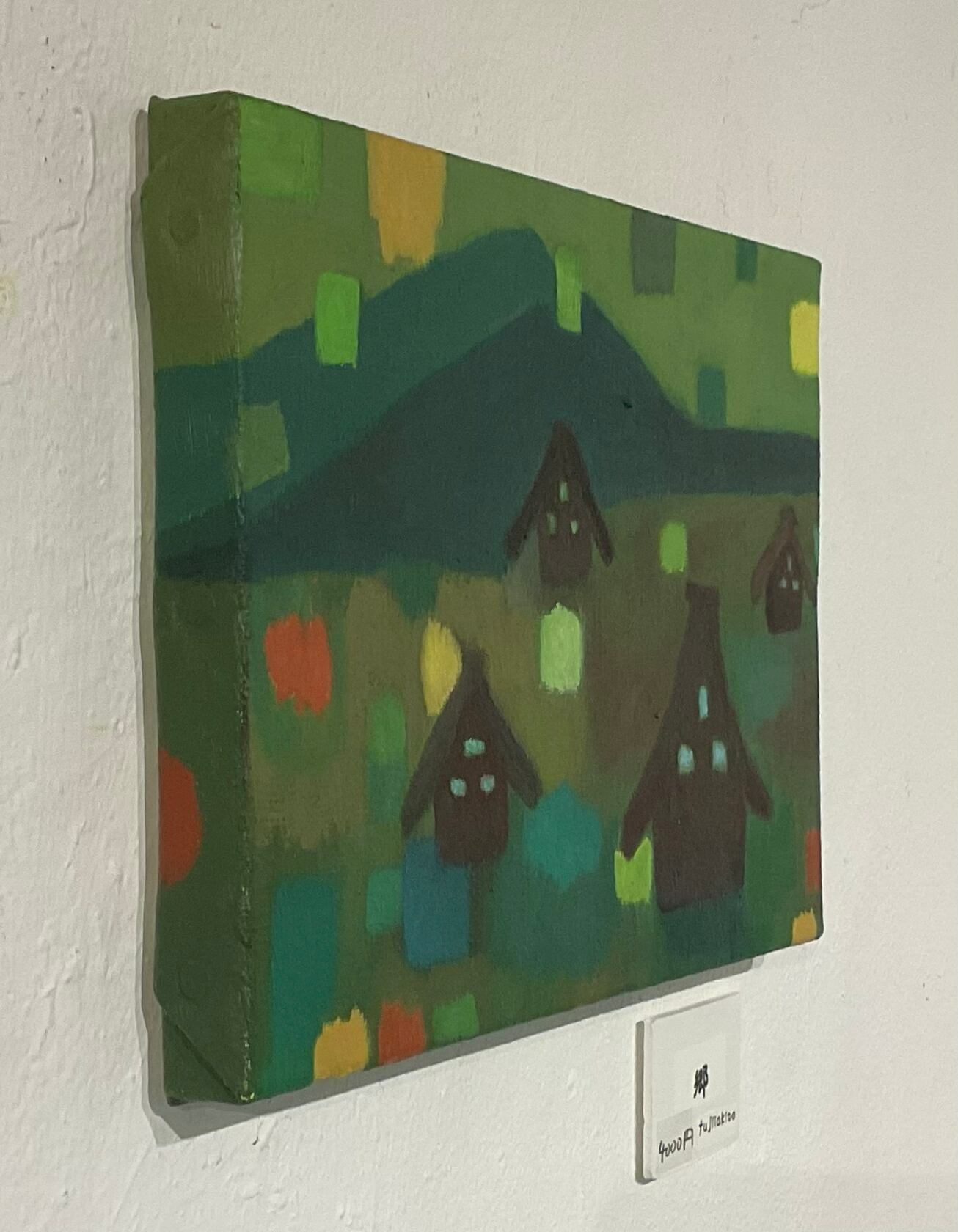 2025年、K.Art Studioにて開催された藤井秋人「青天のヘキレキ」展に出品された作品。2025年制作、キャンバスにアクリル絵具。23.0x15.7cm。郷里の懐かしさを感じさせる、優しい色合いの作品。「郷」は、郷愁と共鳴をテーマにした新作で、日常の中で感じる思い出の瞬間を再発見するきっかけを提供します。この作品は、昔の懐かしい情景が観る者の心に静かな感動を呼び起こし、それぞれの心の中に隠された思い出を掘り起こします。