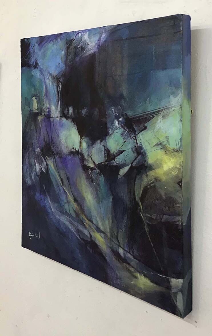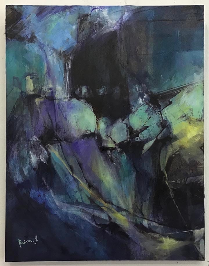 宇宙派展最終回に出品した岩崎里香の作品。紙に油彩、410mmx320mm「この世の存在する無数の生命、なのにたった一つの偶然なぜ私は私、アナタはアナタになったのでしょう。それぞれの私が膨大な記憶を持って行き交っている。人ごみを歩いているとそんな感覚にとらわれます。いま世界が大騒ぎの中、観てくださる方との出会いがあることに感謝します」