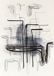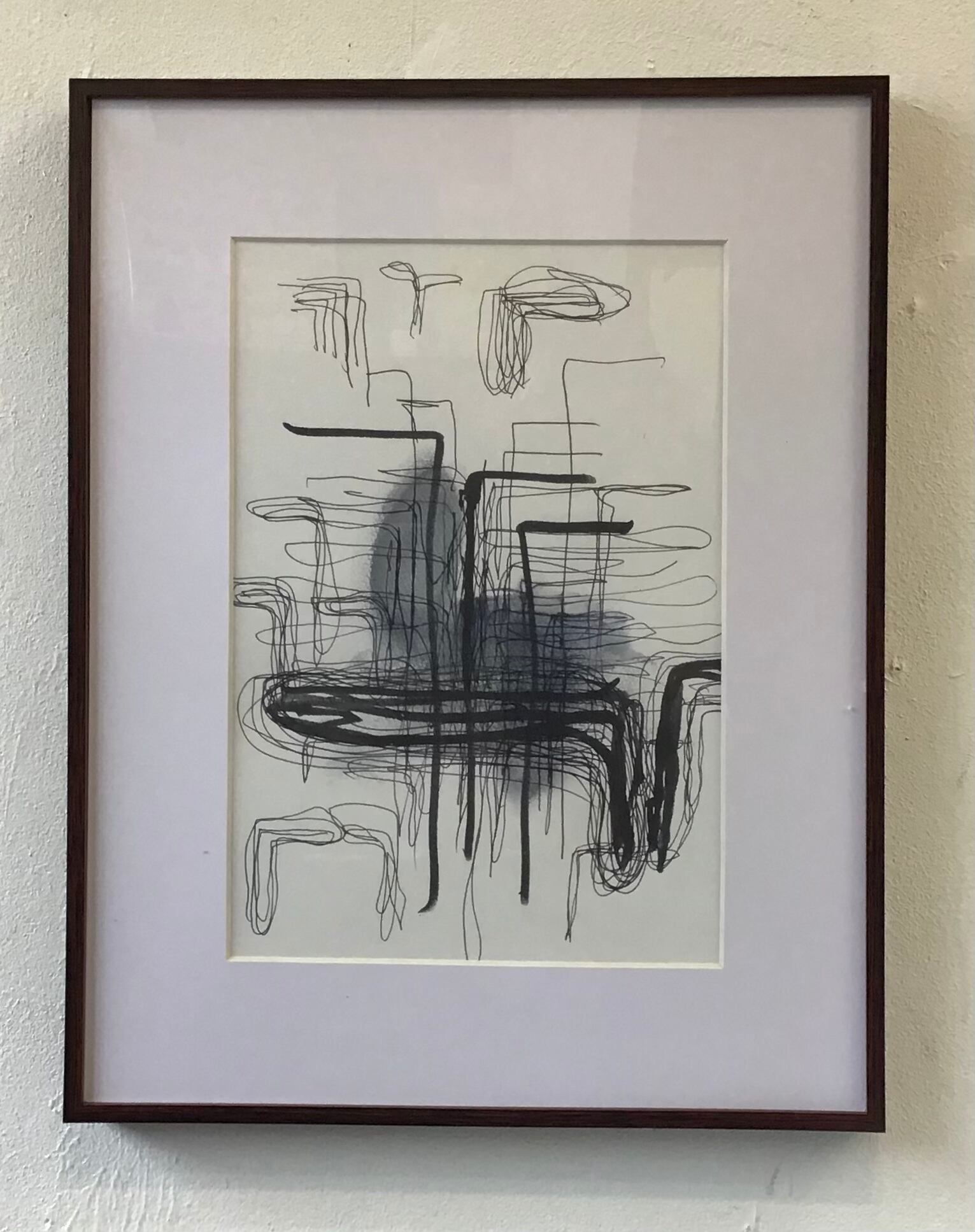 加藤K作品2021年のドローイング。A4サイズ。ワトソン紙に筆ペン、ジェッソ。額入り・箱あり