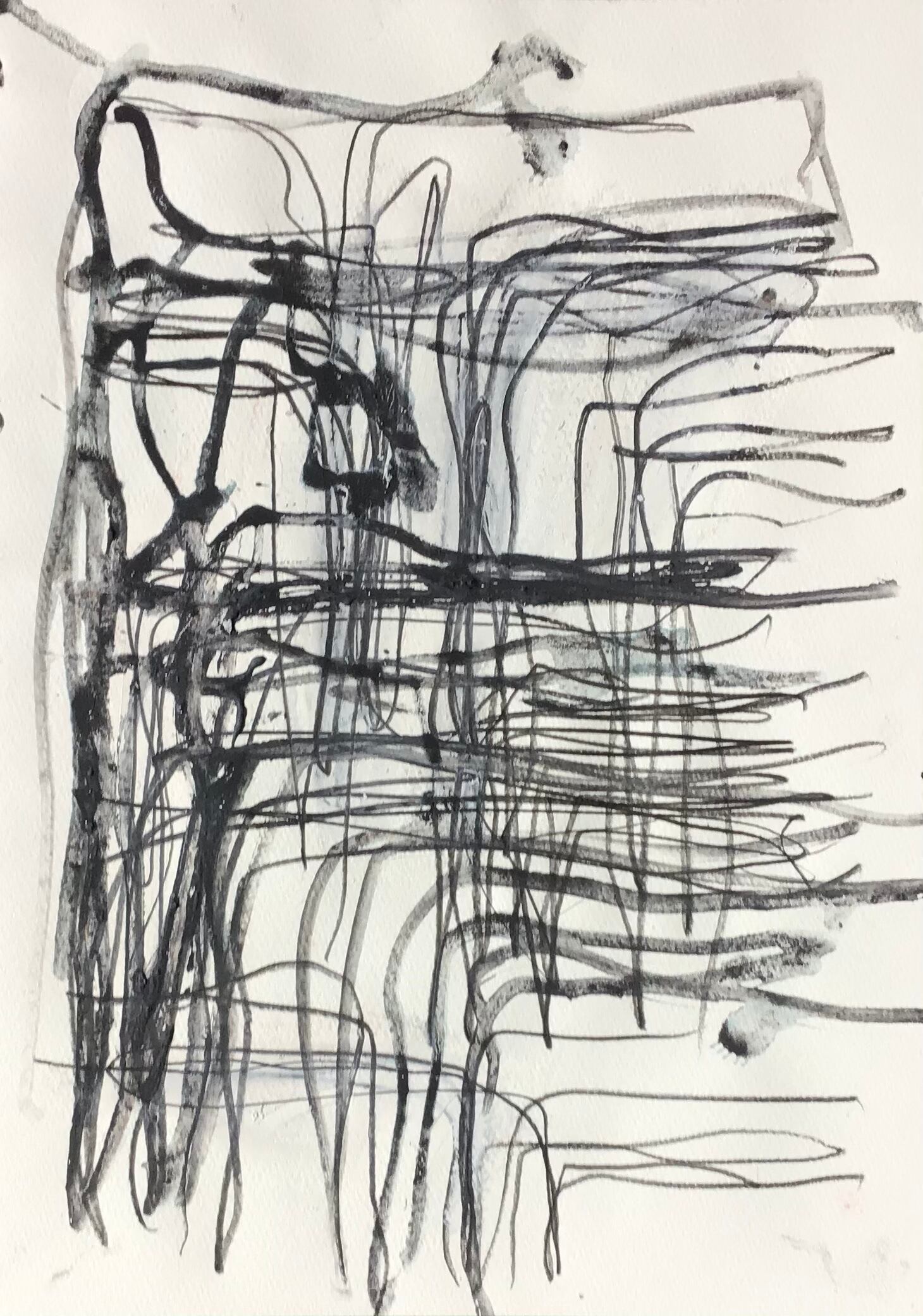 加藤K作品2021年のドローイング。A4サイズ。ワトソン紙に筆ペン、ジェッソ。額入り・箱あり