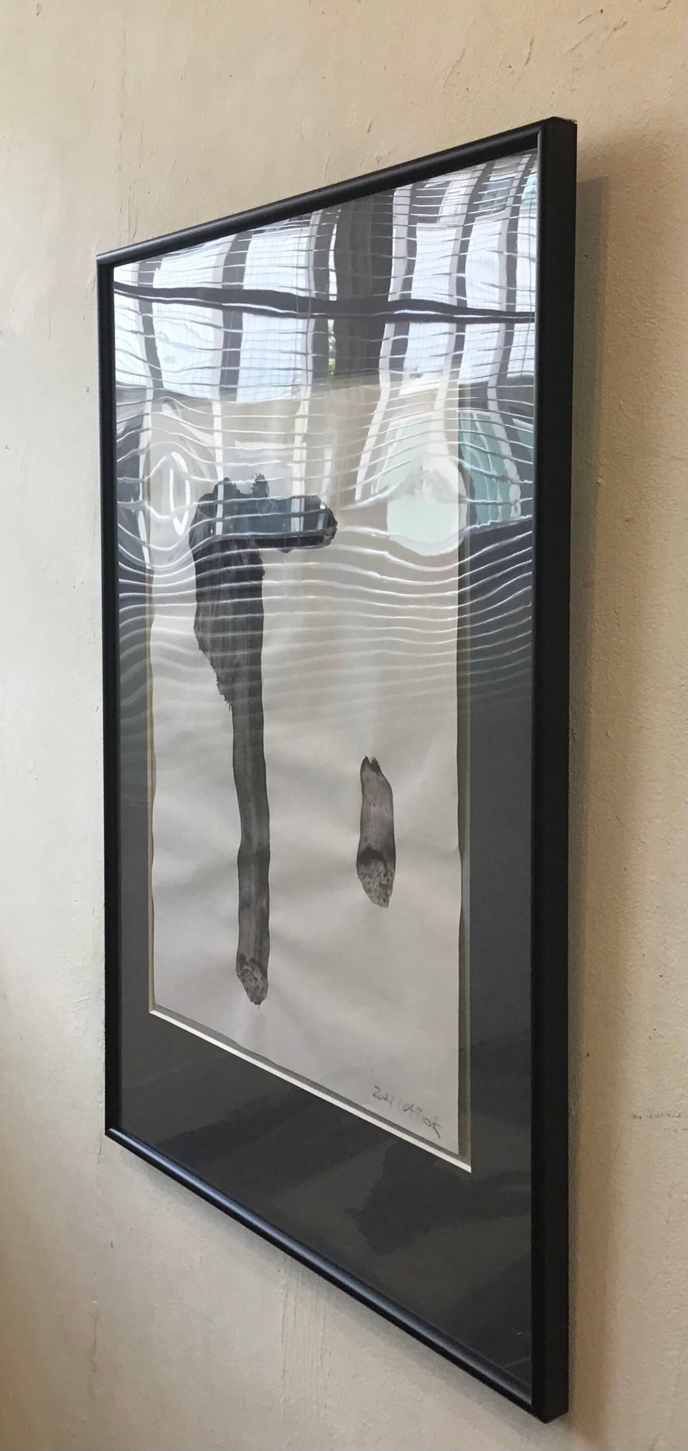 加藤K作品2021年制作の「書」を思わせるペインティング。紙にジェッソ。額つき、サインあり。420mm×594mm(A2)額寸
