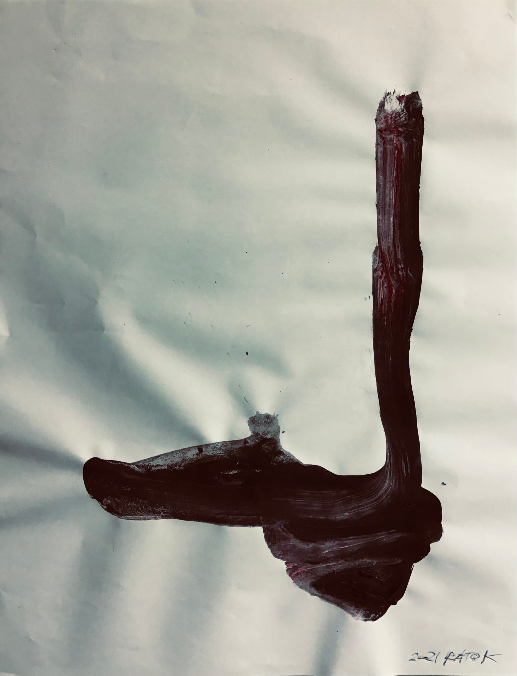 加藤K作品2021年制作の「書」を思わせるペインティング。紙にジェッソ。額つき、サインあり。420mm×594mm(A2)額寸