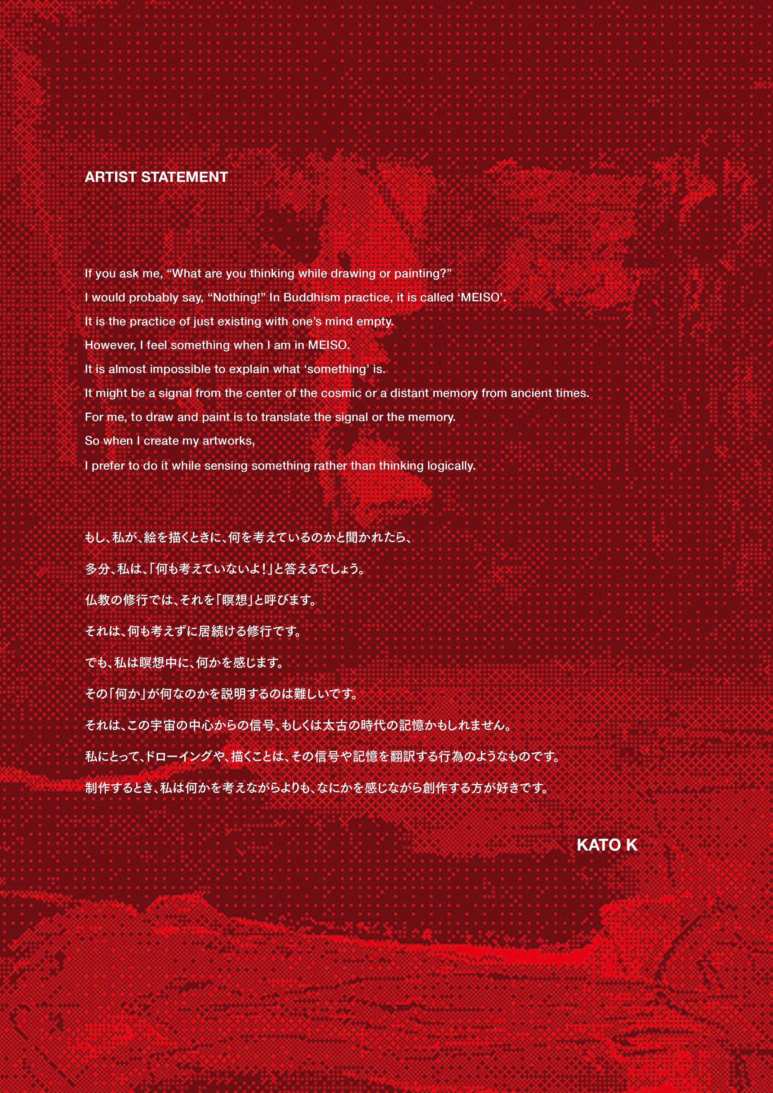 この度、加藤Kによる画集「Last Station Southern Cross」がリリースされました。この画集は、2020年~2021年にかけて創作された加藤Kのペインティング・コラージュ・ドローイング作品が49点収録された画集となります。画集タイトルは、宮沢賢治童話「銀河鉄道の夜」の物語に出てくる、旅の終着駅が「南十字」であることら着想してこのタイトルとしました。この画集を通じて、私の普段感じている「何か」がご覧いただく皆さまに伝わればと思っています。