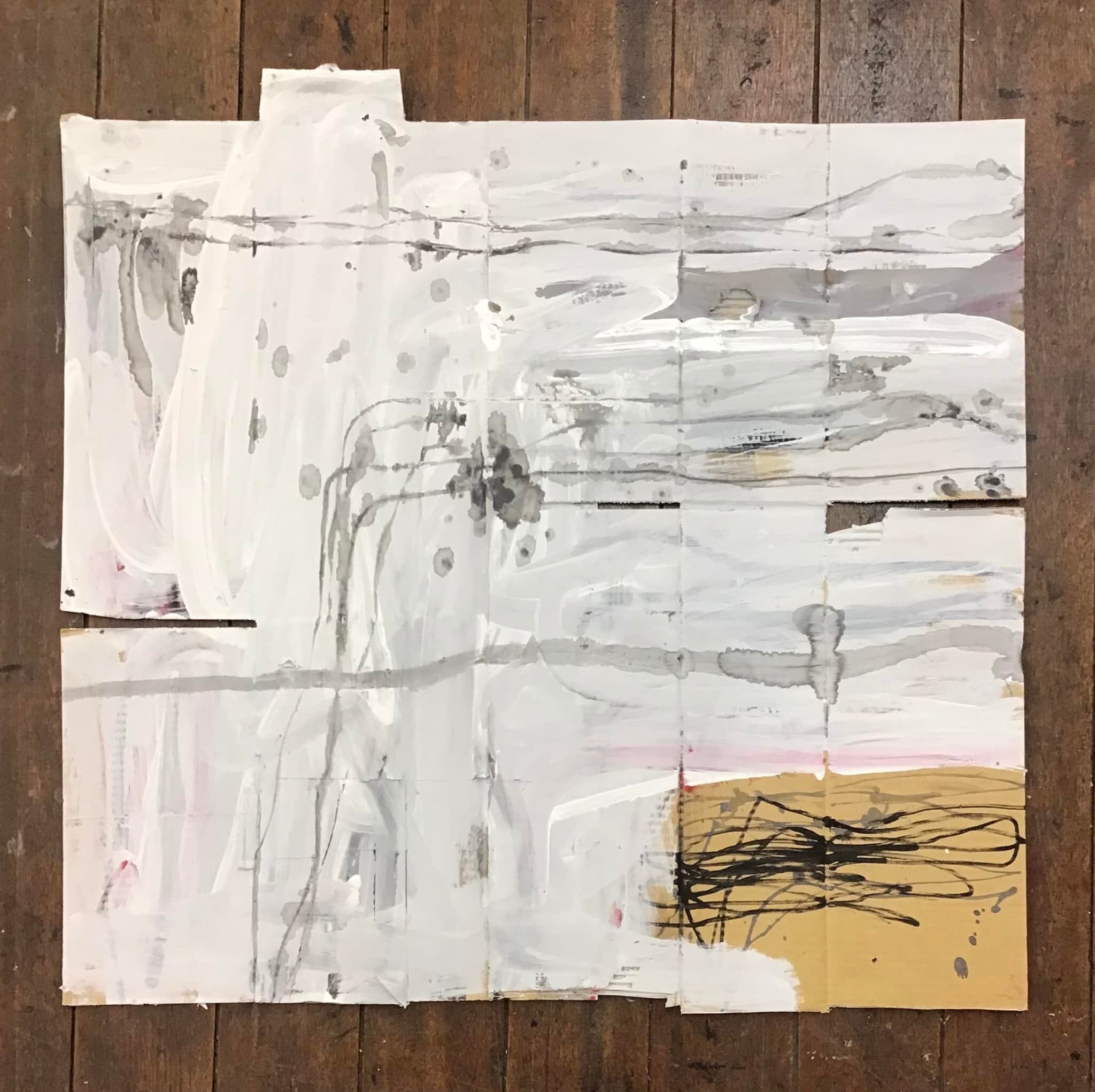加藤K 2022年制作のコラージュ作品。タイトル「サボテンの花」。加藤の敬愛するミュージシャン財津和夫氏の名曲のタイトルを作品名にした。段ボールのコラージュ、顔料マジック等。72.0x70.0cm。額なし。専用シートとプラスチック段ボールに挟んでお送りします。