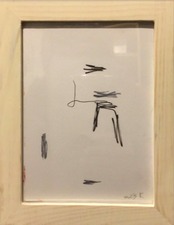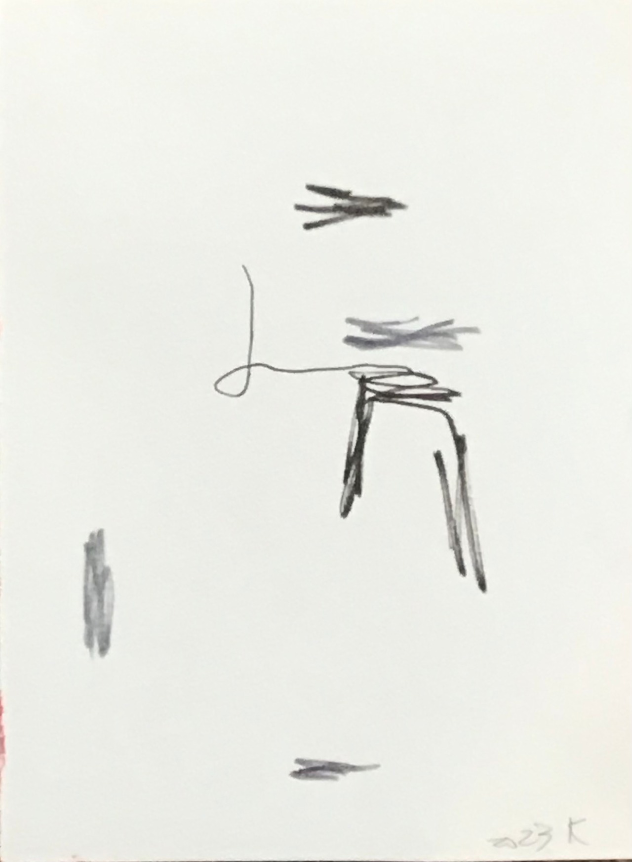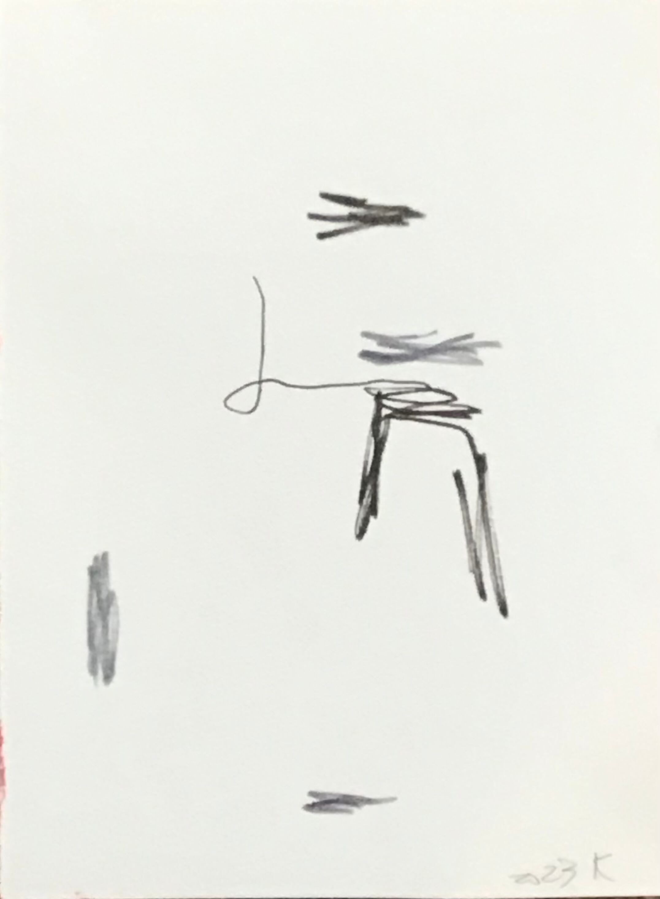 加藤K 2023年制作の小型ドローイング。独特のタッチをお楽しみください。紙に筆ペン・作品寸12.3x16.6cm・額付き