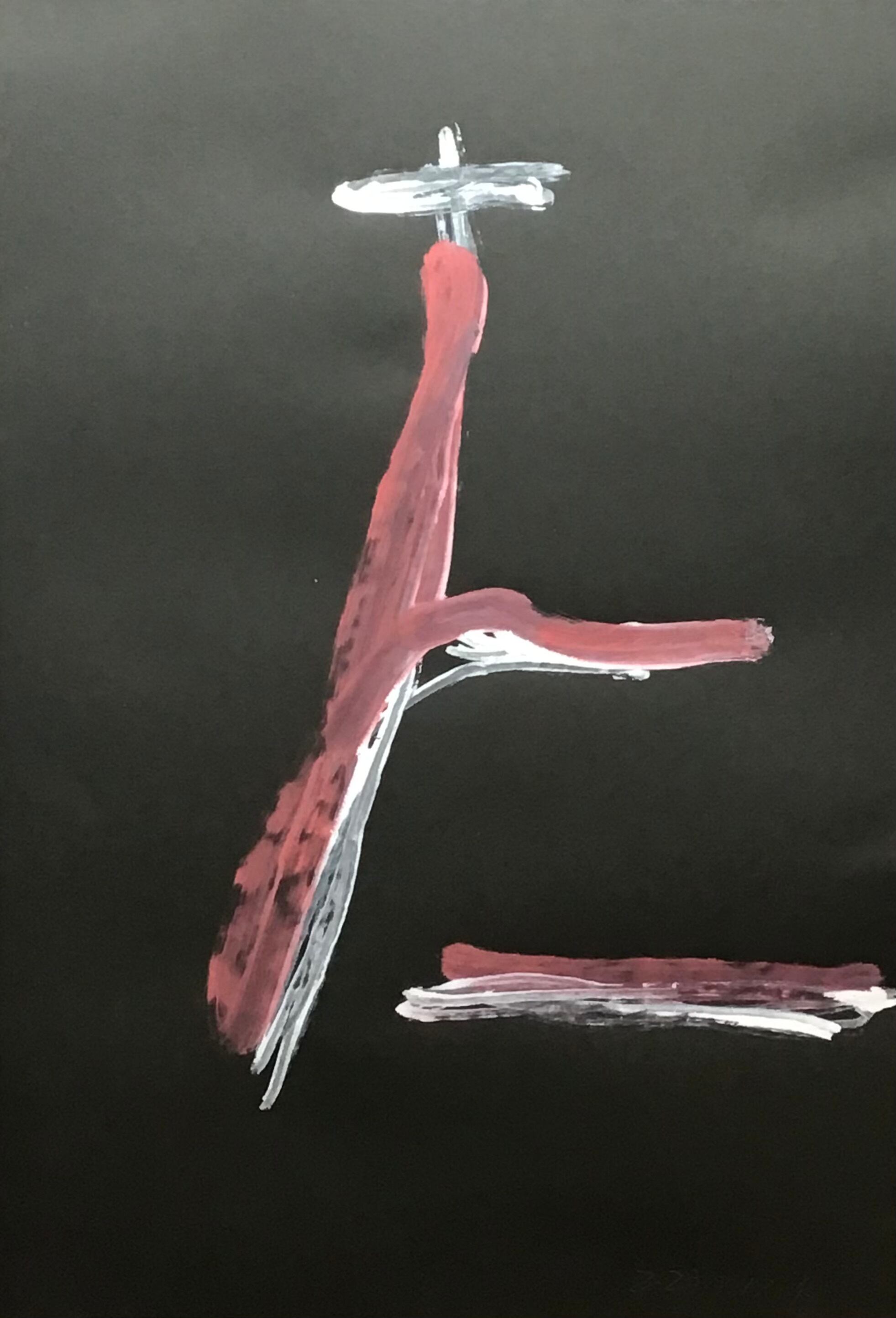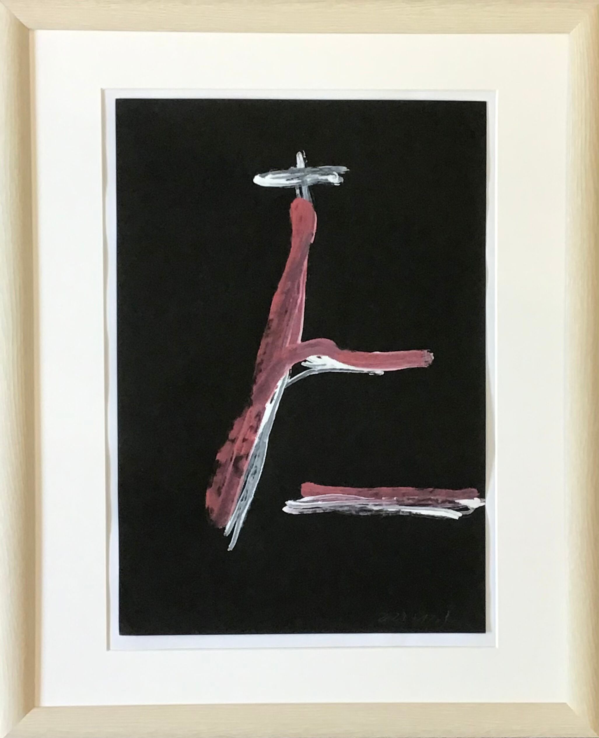 加藤K 2023年制作「コズミックシリーズ」ドローイング。黒い画用紙に顔料。宇宙空間に漂う謎の物質か?自由にイメージしてください。作品寸27x39cm。額入り(額色・乳白)。サインあり